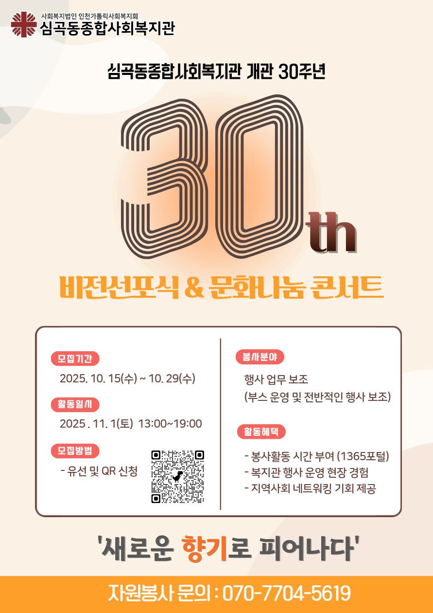 [심곡동종합사회복지관] 2025년 개관행사 자원봉사자 모집