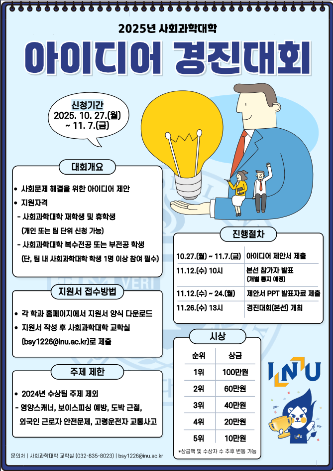 사회과학대학은 사회문제 해결을 위한 아이디어 경진대회를 진행하고자 합니다.