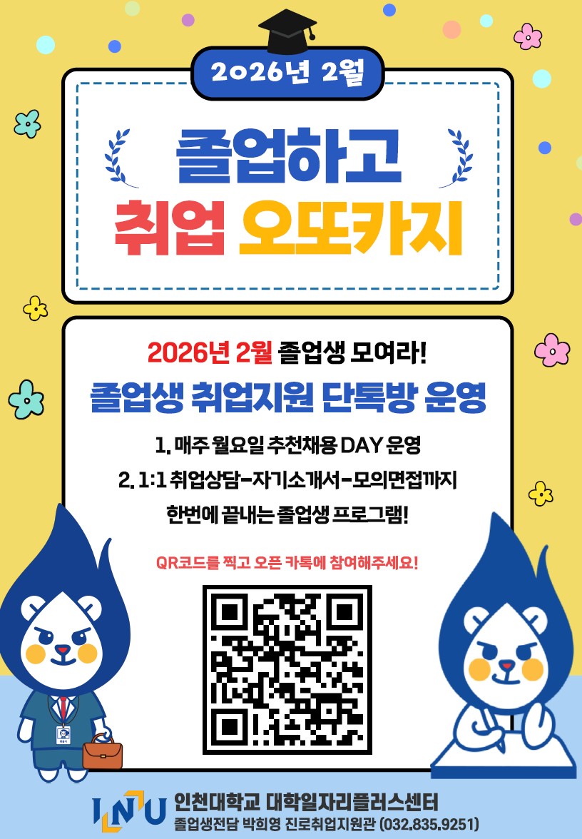 ※ 문의: 졸업생 특화 담당 진로취업지원관 (032-835-9251)