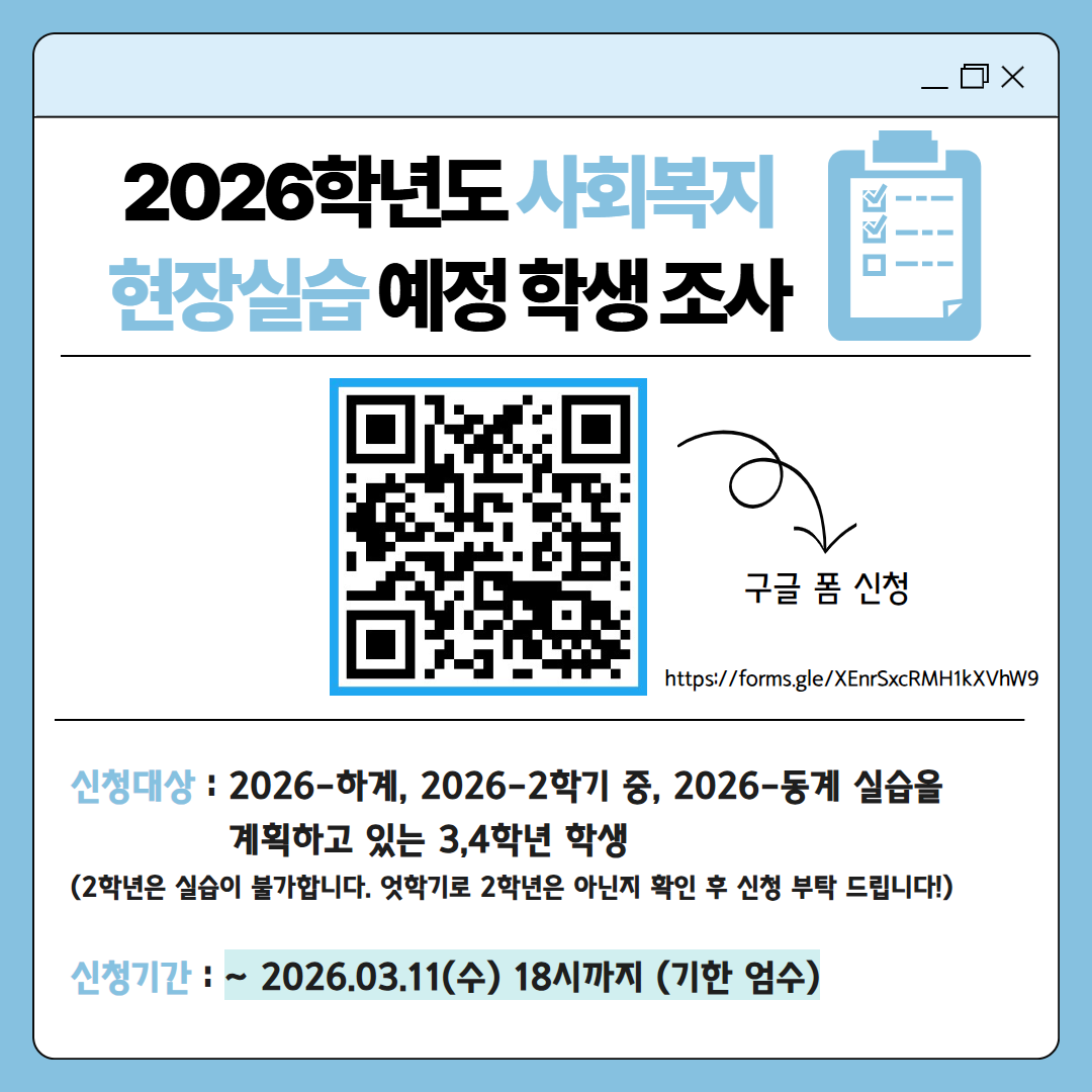 [사회복지학과] 2026학년도 사회복지현장실습 참여 예정 학생 조사